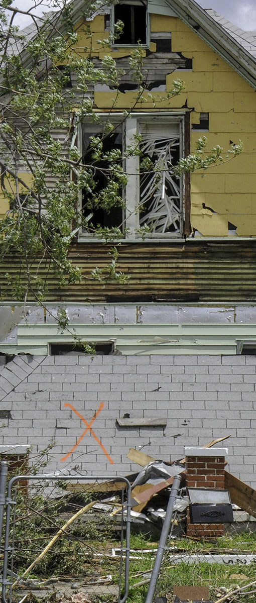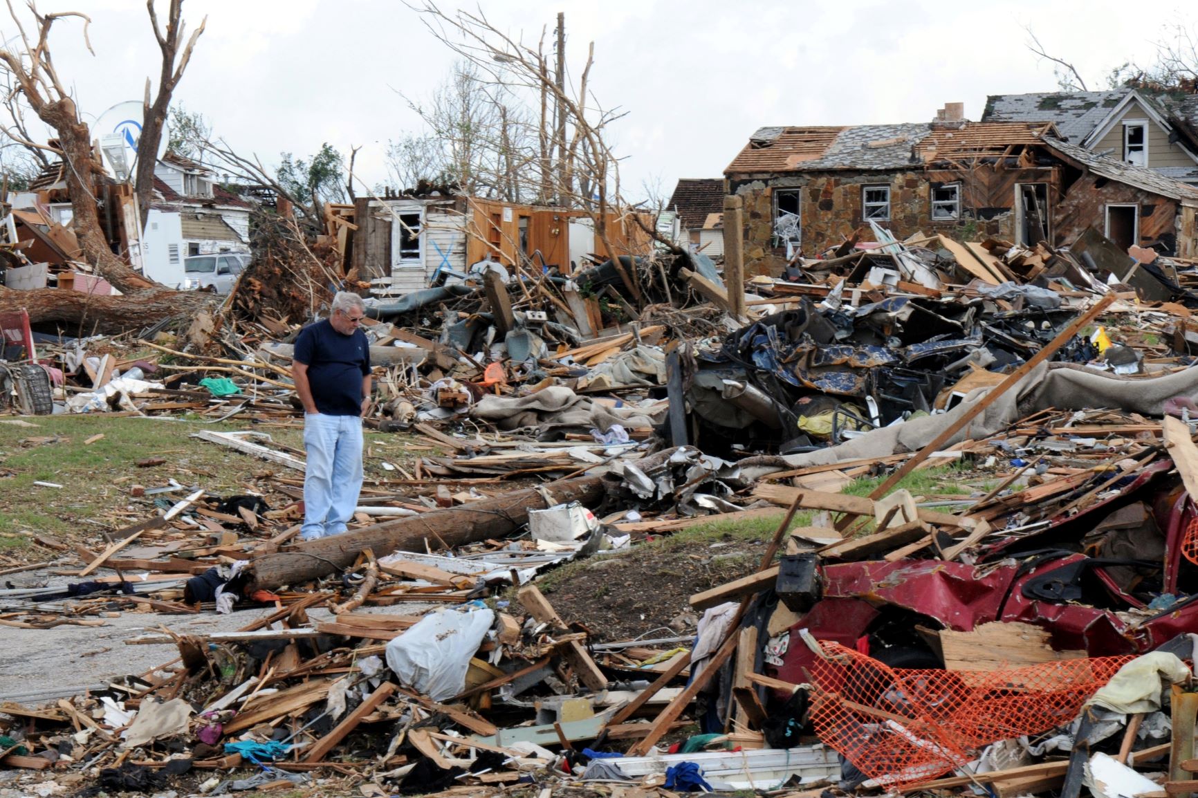A destroyed home near a ruined hospital in Joplin, Missouri, 2011.